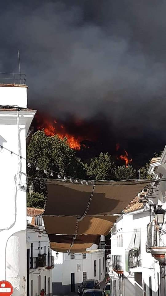 Arde un paraje cerca de Almonaster (Huelva), pueblo que está siendo desalojado