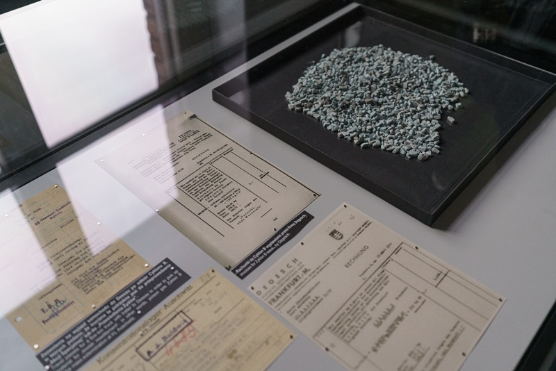 En el campo se conserva una urna dorada donde están depositadas las cenizas encontradas en los hornos poco después de la liberación. Los alemanes se ocuparon de documentarlo, apuntando en documentos el nombre del preso, la profesión y el lugar de procedencia. Una vez llegaban al campo, todos eran marcados con un número en su antebrazo que tenían que aprender en alemán; y en la ropa le cosían un triángulo, cuyo color dependía de las razones de su encarcelamiento. Colores y números que definían su lugar en la jerarquía del campo donde crearon un mundo paralelo con todo organizado. De todas las nacionalidades, la menos reconocida era la judía, la ropa de estos presos tenía la estrella de David, eran los peor tratados.