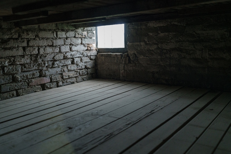 La primera prueba que se realiza con el gas ciclón fue precisamente con 600 de estos prisioneros polacos en 1941, a los que iban metiendo en una lúgubre habitación del sótano para acabar con ellos, hoy por medio de una mirilla se aprecia un espacio sin apenas luz cerrado al visitante. En este mismo barracón, se conservan tres cámaras de castigo, aquellas en las que pasaban días encerrados los prisioneros; en cubículos de un metro cuadrado metían hasta cuatro personas, sin apenas respiraderos, sin baño, sin comer.