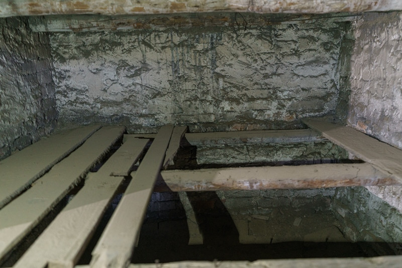 La primera prueba que se realiza con el gas ciclón fue precisamente con 600 de estos prisioneros polacos en 1941, a los que iban metiendo en una lúgubre habitación del sótano para acabar con ellos, hoy por medio de una mirilla se aprecia un espacio sin apenas luz cerrado al visitante. En este mismo barracón, se conservan tres cámaras de castigo, aquellas en las que pasaban días encerrados los prisioneros; en cubículos de un metro cuadrado metían hasta cuatro personas, sin apenas respiraderos, sin baño, sin comer.