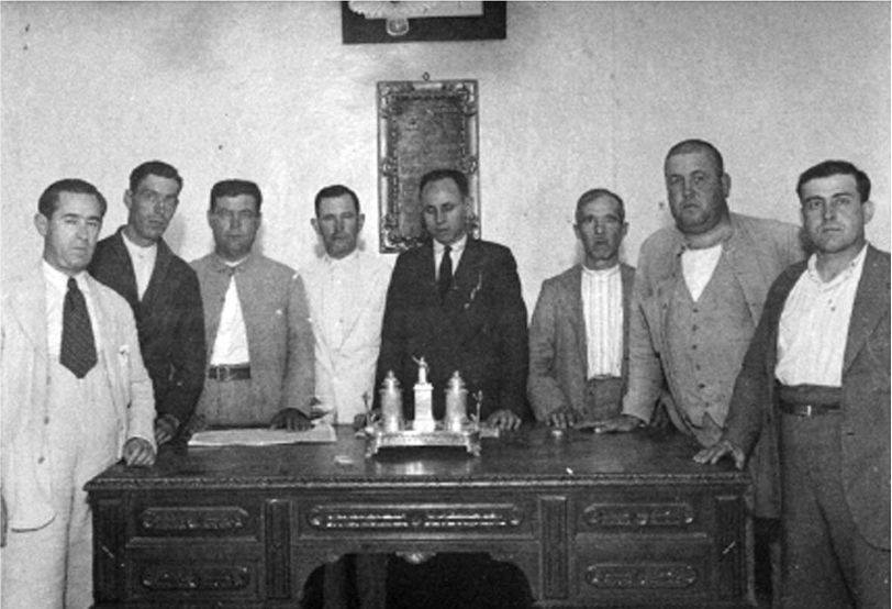 Despacho del Alcalde Luis Arispon en el Antiguo Ayuntamiento en la Plaza Ducal, cuyo cuadro del fondo hoy se conserva en la actual Alcaldia.