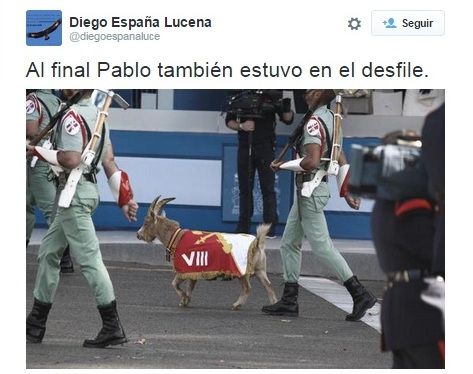 Sin duda de todo lo que estuvo en los últimos 7 días Rulando por las redes el protagonismo se lo lleva la cabra de la legión, llamada Pablo, que ha convertido el polémico Día de la Hispanidad en centro de atención. Los legionarios han puesto a la cabra Pablo, con esa solapada intención que da la ocurrencia. Lo demás ha sido dejar volar la imaginación.