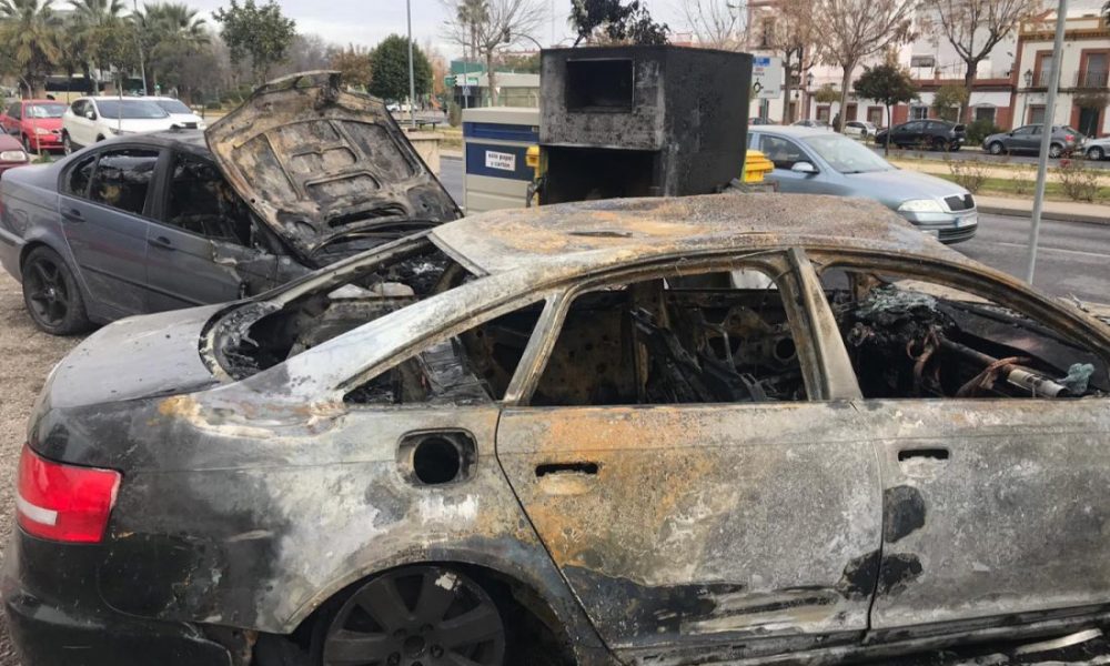 Arden cuatro coches y varios contenedores en Camas. La Policía investiga lo ocurrido, aunque en principio parece un incidente accidental Un total de cuatro coches que estaban...