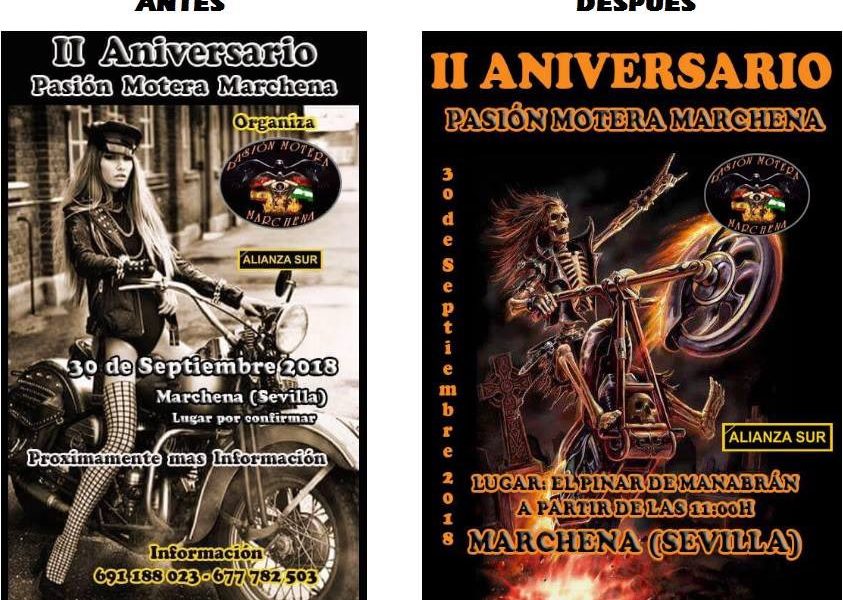 Fermín Cabanillas/Carmen González – Marchena (Sevilla) Un motoclub de la localidad sevillana de Marchena, ‘Pasión motera Marchena’, ha tenido que cambiar el cartel diseñado para celebrar...