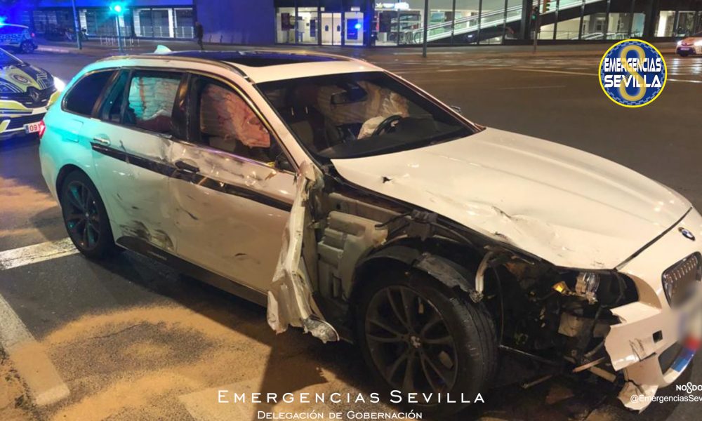 Agentes de la Policía Local de Sevilla investigan las circunstancias que rodearon un aparatoso siniestro vial ocurrido sobre las 5:20 horas de esta madrugada en la...