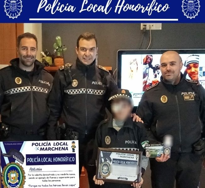 Agentes de la Policía Local de Marchena han visitado en su casa a Antonio, el «Pequeño Gerrero» que resultó herido de gravedad en la Cabalgata de...