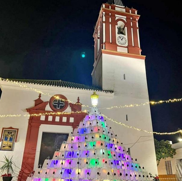 Las farolas han sido pintadas en blanco y adornadas de piñas naturales del terreno granaíno y, finalmente, alumbrado con luces leds de colores, para volver a...