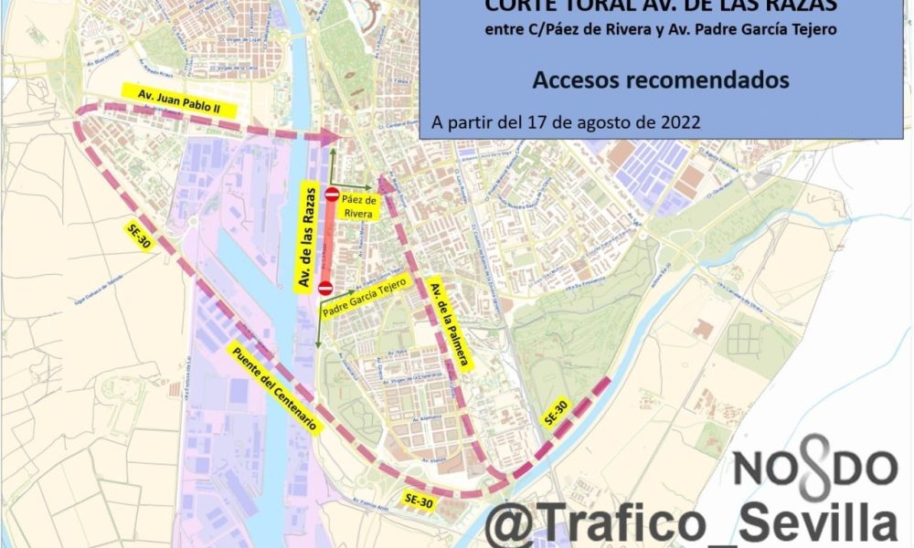 El Ayuntamiento de Sevilla corta este miércoles de forma «total» al tráfico y durante un año la avenida de Las Razas por las obras de ampliación...