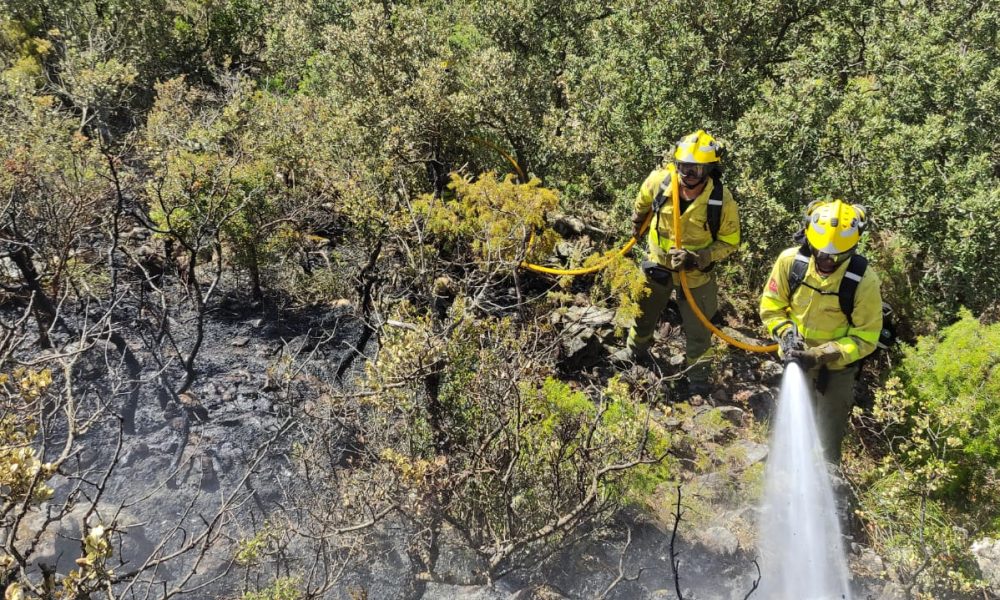 Efectivos del Plan Infoca trabajan desde esta madrugada en la extinción de un incendio declarado de madrugada en un paraje de la localidad sevillana de El...